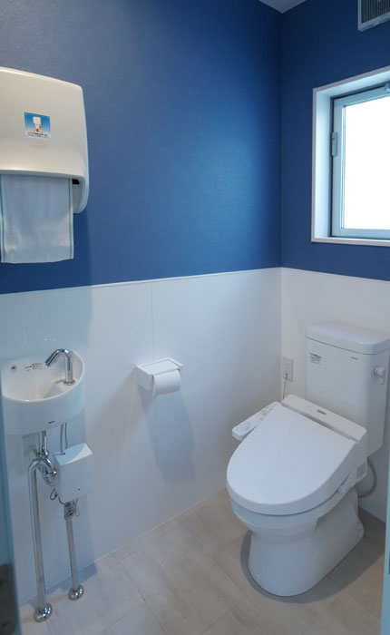 青をテーマカラーとしたトイレ。 涼しげで清潔感のある空間に。
